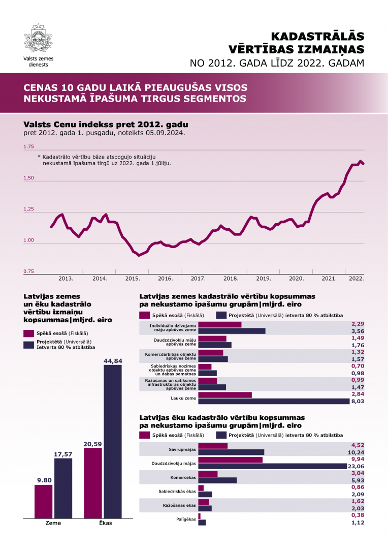 Atbilstoši Saeimas pieņemtajam lēmumam no 2025. gada 1. janvāra būs divas nekustamā īpašuma kadastrālās vērtības - fiskālā un universālā.