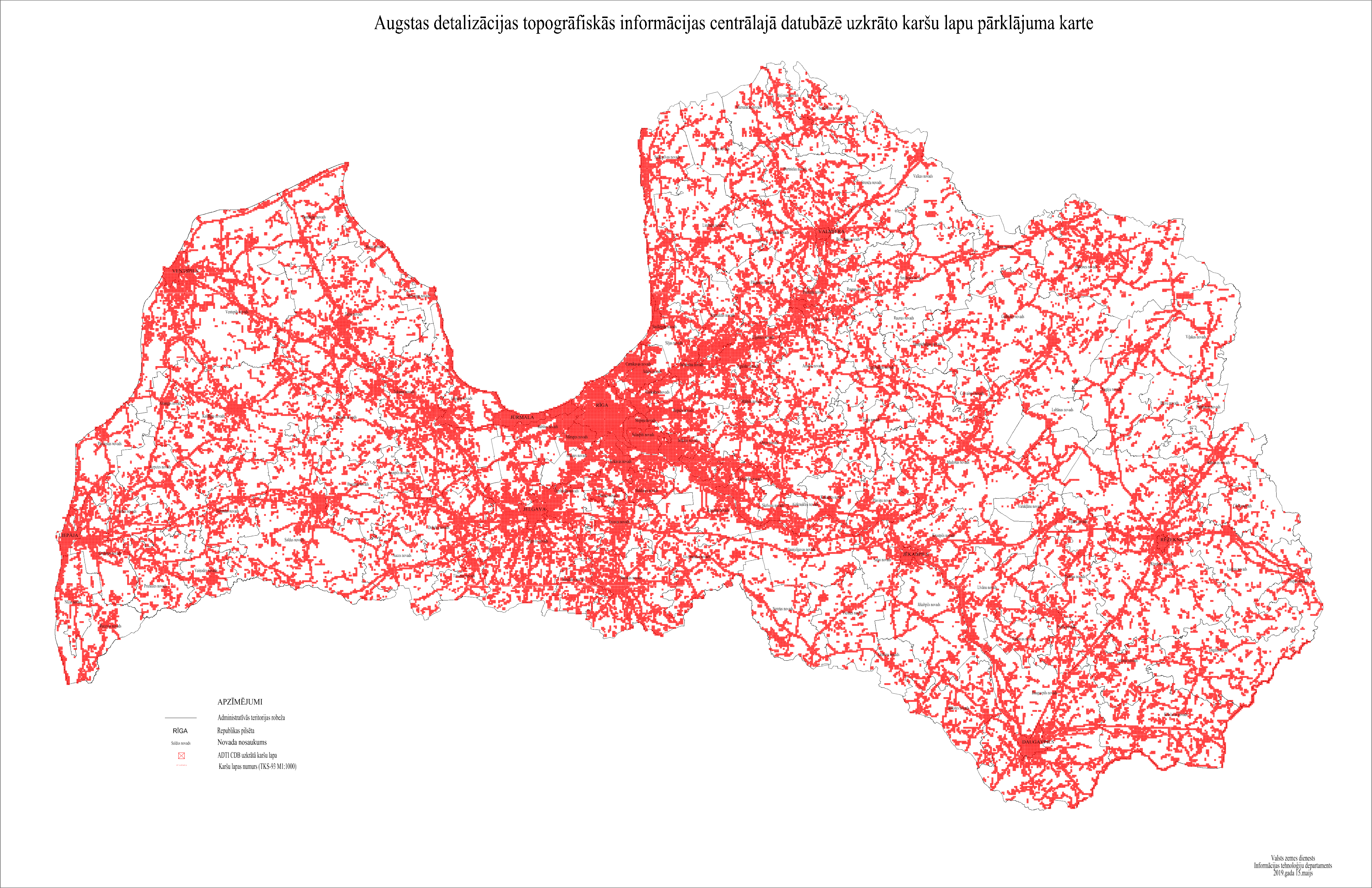 ADTI centrālajā datubāzē uzkrāto karšu lapu pārklājums: